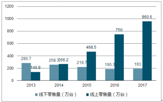 2013 年-2017 年中國(guó)吸塵器線上和線下零售量