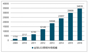 2009年-2016年全球LED照明市場規(guī)模(單位:百萬美元)