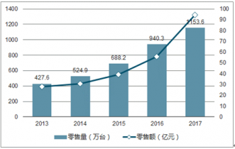 2013 年-2017 年中國(guó)吸塵器市場(chǎng)規(guī)模