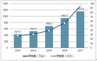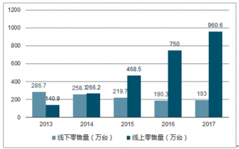 2013 年-2017 年中國吸塵器線上和線下零售量