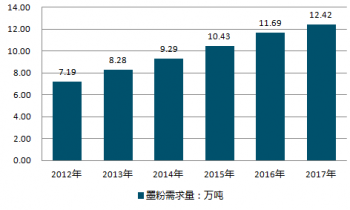 2012-2019年中國(guó)墨粉行業(yè)需求量情況