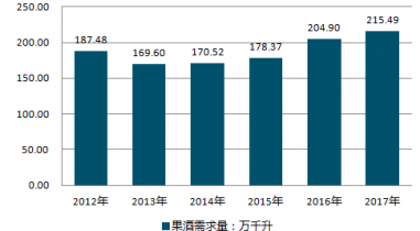 2012-2019年中國(guó)果酒行業(yè)需求量情況