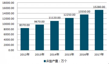 2012-2019年中國床墊行業產量情況