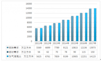 2011-2019年中國(guó)加氣混凝土行業(yè)需求量情況