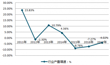 2011-2019年中國(guó)鐵礦石原礦行業(yè)產(chǎn)量增速情況