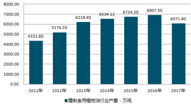 2011-2019年中國精制食用植物油行業(yè)產(chǎn)量情況