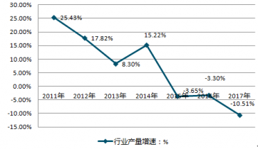2011-2019年中國鮮、冷藏肉行業產量增速情況