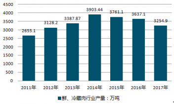 2011-2019年中國鮮、冷藏肉行業產量情況