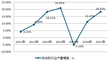 2011-2019年中國發(fā)動機行業(yè)產(chǎn)量增速情況