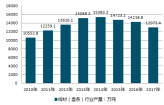 2010-2019年中國(guó)線材(盤條)行業(yè)產(chǎn)量情況