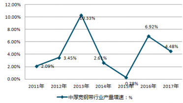 2011-2019年中國中厚寬鋼帶行業產量增速情況