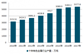 2010-2019年中國十種有色金屬行業(yè)產(chǎn)量情況