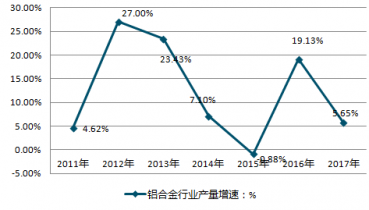 2011-2019年中國鋁合金行業(yè)產(chǎn)量增速情況