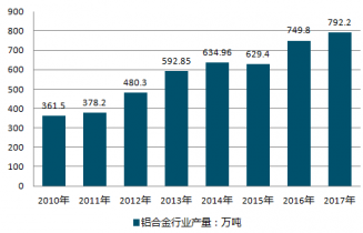 2010-2019年中國(guó)鋁合金行業(yè)產(chǎn)量情況