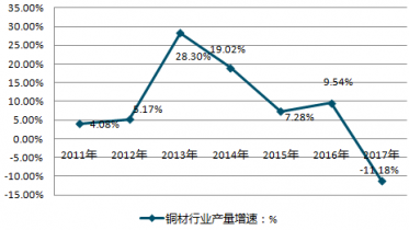 2011-2019年中國銅材行業(yè)產(chǎn)量增速情況