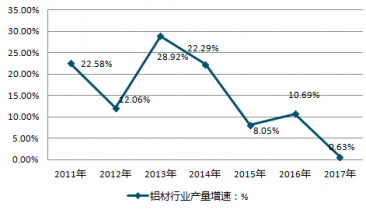 2011-2019年中國(guó)鋁材行業(yè)產(chǎn)量增速情況