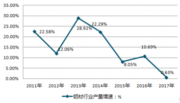 2011-2019年中國鋁材行業(yè)產(chǎn)量增速情況