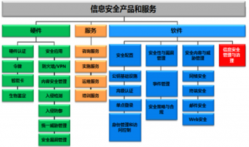 信息安全產(chǎn)品主要分為硬件和軟件兩大類,硬件包括智能卡類和防火墻等設(shè)備類;軟件主要包括訪問控制認證類、漏洞和事件管理類、內(nèi)容安全類和信息安全管理和治理類。