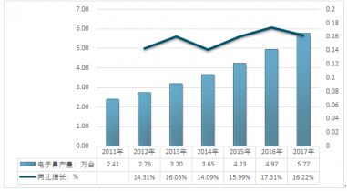 第.一節(jié)電子鼻行業(yè)產(chǎn)量分析