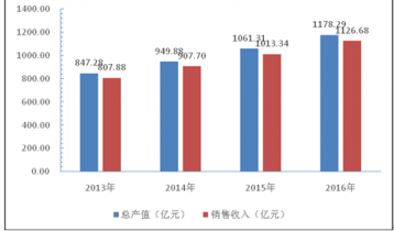 2013-2016年我國膠粘劑行業總產值、銷售收入分析