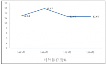 2013-2016年我國己二酸行業對外依存度分析