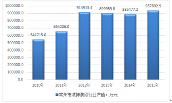 2014年常州市裝飾裝修行業(yè)產(chǎn)值為88.65億元,其中市區(qū)裝飾裝修行業(yè)產(chǎn)值為74.30億元,溧陽市裝飾裝修行業(yè)產(chǎn)值為6.69億元,金壇市裝飾裝修行業(yè)產(chǎn)值為7.66億元。2015年常州市裝飾裝修行業(yè)產(chǎn)值在93.79億元左右,產(chǎn)值同比增長5.8%。