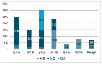 我國主要珠寶企業(yè)中國內(nèi)地最新門店情況(家)