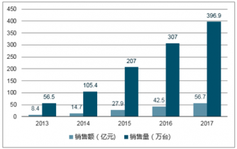 據中國產業信息網統計,2013年我國掃地機器人銷售量56.53萬臺,2016年增長至306.96萬臺,銷售量復合年度增速75.77%,2019年銷量預計可達400萬臺。2013年我國掃地機器人銷售額8.38億元,2016年達42.50億元,銷售額復合年度增速71.81%,2019年銷售額預計可達56.71億元。與我國目前家用吸塵器30%-40%的滲透率及美國掃地機器人16%的滲透率相比,我國掃地機器人滲透率提升空間廣闊。我們認為受消費升級和我國人口老齡化問題影響,未來消費者對家務機器人的剛性需求會愈加明顯。