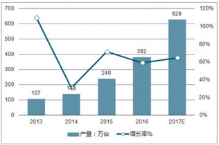 圖表:2013-2019年中國家務機器人行業產量及增速分析