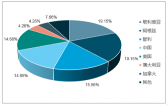 鋰在自然界中分布較廣,主要分布在南美洲、北美洲、亞洲、大洋洲以及非洲。鋰在地殼中的含量約為0.0065%。根據(jù)美國(guó)地質(zhì)調(diào)查局(USGS)2019年發(fā)布的數(shù)據(jù),全球鋰資源量約為4700萬(wàn)噸,探明儲(chǔ)量約為1400萬(wàn)噸。已探明鋰資源儲(chǔ)量中,玻利維亞和阿根廷的鋰資源排名并列第.一,為900萬(wàn)噸,占比19.15%。其次為智利750萬(wàn)噸,占比15.96%;中國(guó)700萬(wàn)噸,占比14.89%、美國(guó)690萬(wàn)噸,占比14.68%。其他鋰資源較豐富的國(guó)家包括澳大利亞、加拿大、剛果(金)、俄羅斯、塞爾維亞、巴西、墨西哥、奧地利以及津巴布韋。