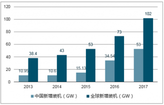在光伏組件效率持續(xù)提升等多因素綜合推動下,過去數(shù)年全球光伏新增裝機持續(xù)增長,從2013年的38.4GW增至2019年的102GW;同時,國內(nèi)市場疊加光伏扶貧、分布式和領(lǐng)跑者項目刺激,新增裝機領(lǐng)跑全球,2019年達到53GW,超過全球新增半數(shù)。