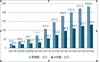 2007-2016年中國戶外用品行業(yè)市場規(guī)模