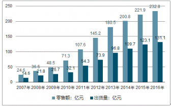 2007-2016年中國戶外用品行業(yè)市場規(guī)模