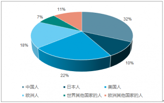 全球個(gè)人奢侈品銷售額不同國(guó)籍占比(%)