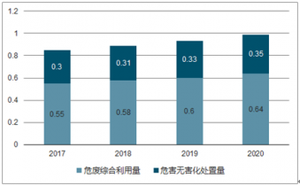2017~2020 年危廢處理量預(yù)測(單位:億噸)
