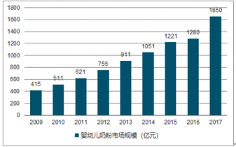 2009-2019年中國嬰幼兒奶粉市場規(guī)模