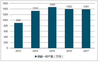 國內磷酸一銨產量下滑。 近年來,受到行業虧損、 環保等因素的影響,國內磷酸一銨的開工受限,產量下降,加之磷銨的主要原材料磷礦石被國務院批復成為戰略性礦產,國家對磷礦石開采實施長期管制,進一步限制了磷銨的開工。自 2014 年起,磷酸一銨的產量增速不斷放緩,到 2016 年產量開始出現下降趨勢, 2017 年全國磷酸一銨總產量(折純) 約為 1391 萬噸(對應實物產量為 2258 萬噸), 同比下降 0.40%。2017 年國內磷酸一銨有效產能約 2600萬噸(實物),外銷的磷酸一銨約為 1400 萬噸(實物),占有效產能的 53%,自用的磷酸一銨約 800 萬噸(實物),占總產能的 30%。合計 2017 年國內產量為 2258 萬噸(實物),有效產能利用率約 83%。從行業集中度看, 國內磷酸一銨行業前 10 的產能占比為 37.3%,行業集中度不高。