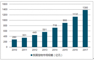 中國的寵物數(shù)量在 2003 年至2016 年的 10 年間增長了900%。2017 年中國寵物數(shù)量已增至1.68億只左右,寵物產業(yè)銷售額突破了1300 億元。寵物行業(yè)已不僅僅局限于售賣寵物食品及寵物美容,以北京為例,北京以寵物為主要服務對象的寵物用品銷售、醫(yī)療保健、寵物美容、寵物攝影等服務機構已有數(shù)百家。