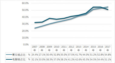 2007-2019年中國氧化鋁及電解鋁產(chǎn)量全球市場份額分析 |