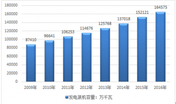 2009-2016年我國電力裝機(jī)容量走勢圖 |