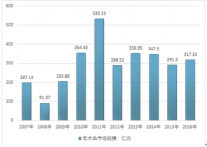 2007-2019年中國藝術品行業(yè)市場規(guī)模情況