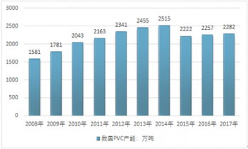 截至2016年年底,PVC總產(chǎn)能2257萬噸,較2015年增長1.58%,2016年產(chǎn)量為1669.2萬噸,同比增長3.73%。2019年國內(nèi)PVC產(chǎn)能為2282萬噸。