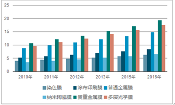 全球高端汽車貼膜市場發(fā)展快速,2016年全球貴重金屬膜市場規(guī)模達19.3億美元。