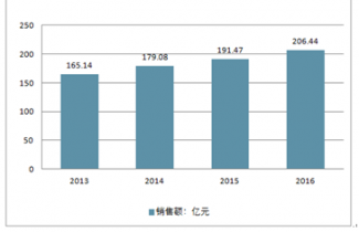 2013 年至 2016 年,我國清熱解毒類口服中成藥市場銷售額從 165.14 億元增長到 206.44 億元,復合增長率為 7.72%。
