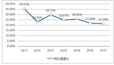 2010-2017跨境出口B2B電商交易規(guī)模增速