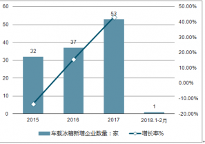 2015-2019年2月我國車載冰箱新增企業(yè)數(shù)量