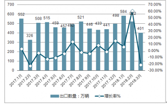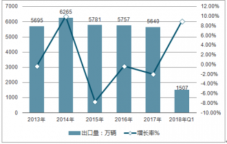 2019年一季度中國自行車出口1507萬輛,同比增長9%。縱觀2013-2019年我國自行車出口量情況,五年間出口量整體略有下降趨勢,年均復(fù)合增長率為-0.24%。