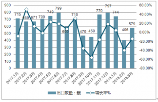 2017-2019年Q1中國船舶出口量及增長走勢