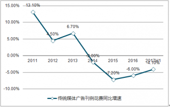 2011-2017上半年傳統(tǒng)媒體廣告刊例花費(fèi)同比增速