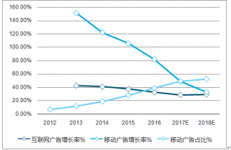 2012-2019年中國互聯(lián)網(wǎng)廣告及移動廣告市場規(guī)模增長率